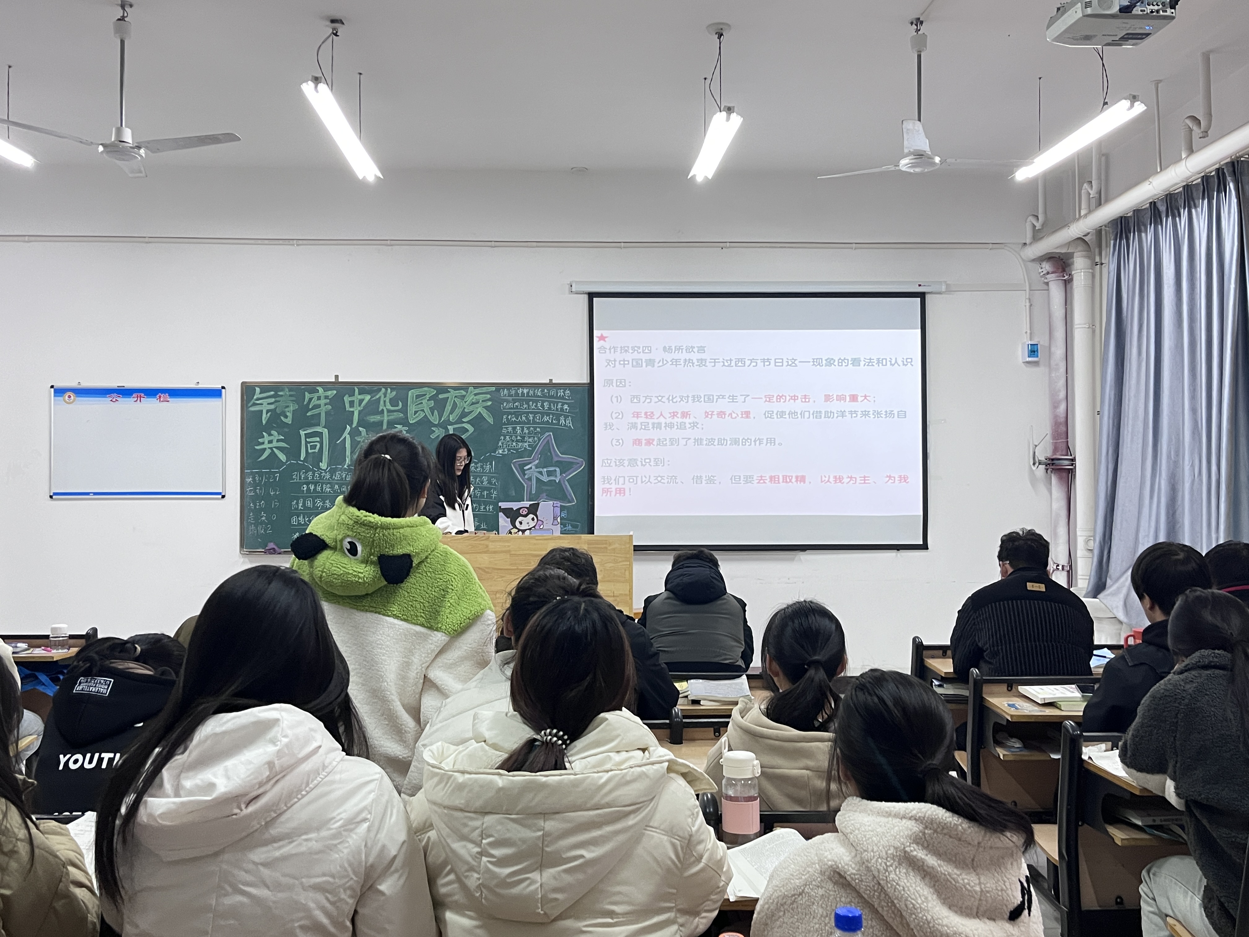 中华民族共同体意识是国家统一之基、民族团结之本、精神力量之魂。为学习宣传党的二十大,深入贯彻落实习近平新时代中国特色社会主义思想,牢牢把握铸牢中华民族共同体意识这条主线,11月15日太阳集团网站8722主持开展了“铸牢中华民族共同体意识”教育主题班会。班会由各班班长组织,全体同学参加。