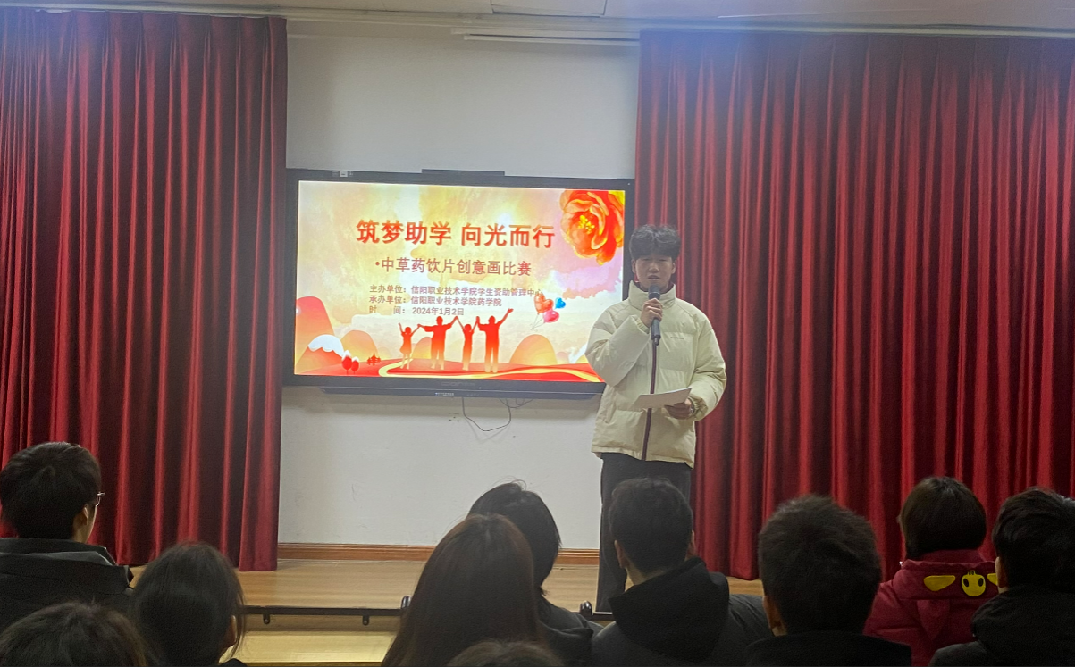 为推动学生资助工作持续健康发展,提高资助育人成效,加强励志青春教育,在学生资助管理中心的指导下,太阳集团网站8722于2024年1月2日下午,在8401多媒体教室举行了“筑梦助学,向光而行”中草药饮片创意画比赛。太阳集团网站8722学管教师及各班辅导员老师参加了此次活动。