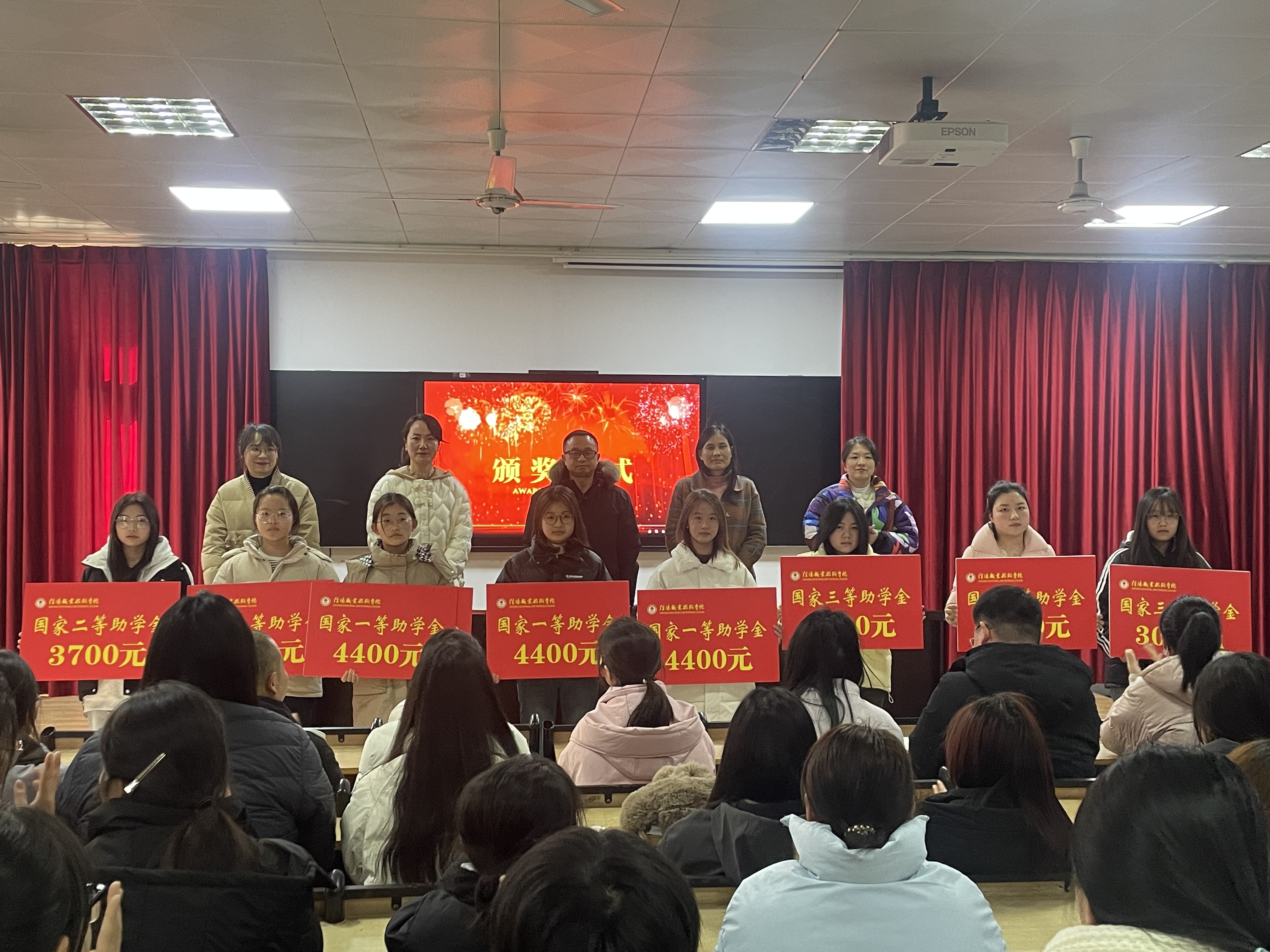 2024年12月26日,太阳集团网站8722在8401多媒体教室隆重举行2024年度国家奖助学金颁发仪式。太阳集团网站8722党总支书记陈才、全体副科级以上干部、各班辅导员老师以及获奖学生等共计220余人齐聚一堂,共同见证这一荣耀时刻。仪式由太阳集团网站8722副院长韩艳红主持。