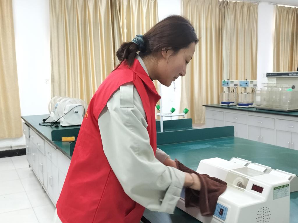 志愿者身穿红色马甲,到达实验楼后,按照老师安排,热火朝天、有条不紊地打扫实验楼卫生。志愿者们有的拿着抹布,认真地清理桌面尘土,窗户污渍;有的拎起扫帚,细心清洁每一个小角落的垃圾;有的扛起拖把,一遍又一遍拂去尘土,将地面打扫得光亮如新,随处可见同学们忙碌的身影。每位党员志愿者都不怕脏,不怕累,让实验室变得更加清洁、亮丽,也为大家营造了良好学习的氛围。