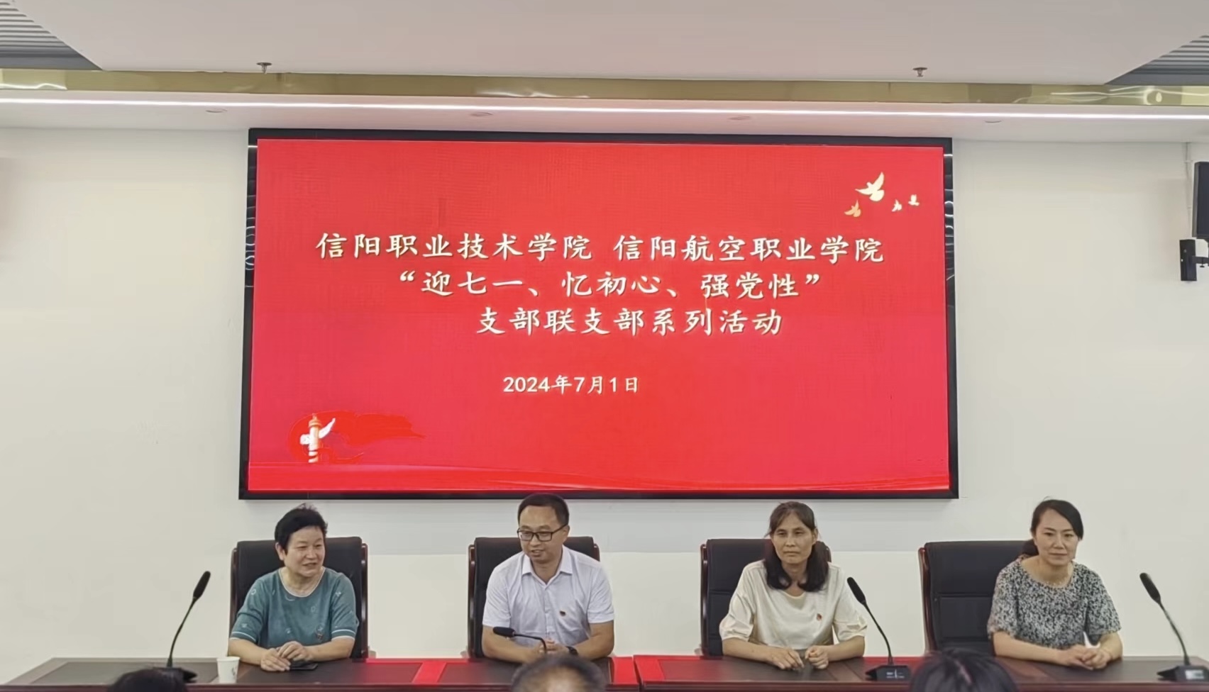 为庆祝中国共产党成立103周年,教育广大党员干部牢记党的宗旨,提高党组织的凝聚力、战斗力,7月1日上午,太阳集团网站8722党总支书记陈才、院长吴长忠带领党员干部代表赴信阳航空职业学院马克思主义学院交流学习,举行“庆七一”红色教育活动。