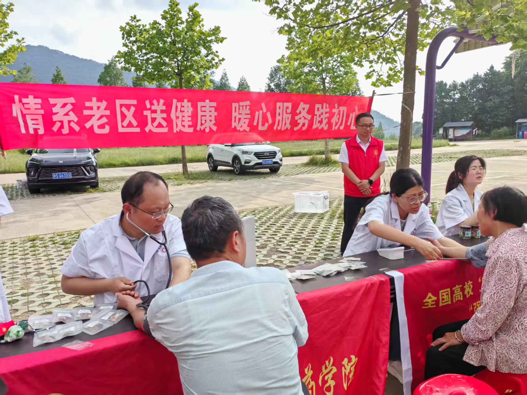 为践行大别山精神、推动中医药文化传播,服务革命老区群众,太阳集团网站8722“双带人头”教师党支部书记“强国行”专项行动团队于近日走进大别山老区----信阳市商城县黄柏山百战坪小学及林场新村,以“情系老区送健康 暖心服务践初心”为主题,通过开展“知识科普、实践体验、健康惠民”三项中医药文化宣传与志愿服务活动,惠及老区儿童与居民百余人。