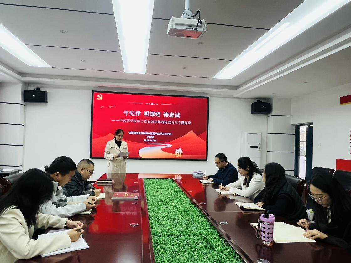 为落实纪律规矩教育月要求,强化学工党员纪律意识与育人责任,10月28日,中医太阳集团网站8722学工党支部在党员活动室召开“守纪律 明规矩 铸忠诚——以严明纪律护航立德树人”专题党课,由支部书记李光霞主讲,全体党员参加学习。
