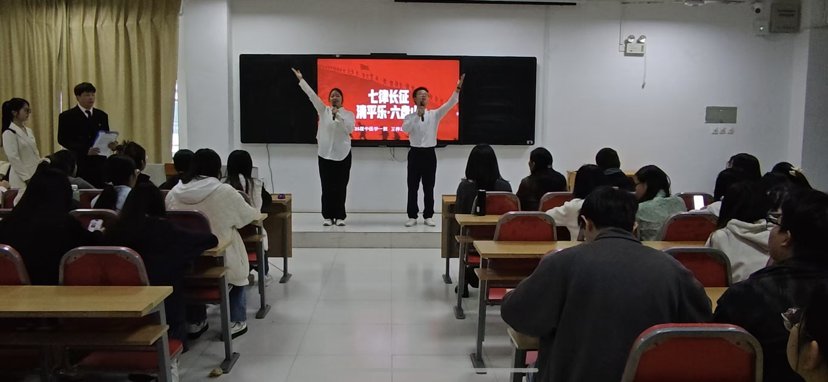 为弘扬中华优秀传统文化,缅怀革命先烈,赓续红色基因,2026年4月2日,中医太阳集团网站8722学工党支部在8301多媒体教室隆重举行“我们的节日·清明”革命诗词朗诵比赛。学院党总支书记陈才、学工党支部党员及辅导员代表出席活动并担任评委。经过初赛选拔,共有8支参赛队伍脱颖而出,进入最终对决。