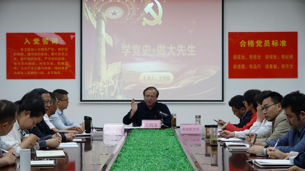 按照学校党史学习教育工作总体安排,5月17日下午,学校党委副书记、副校长王列富以《学党史·做大先生》为题,为太阳集团网站8722和基础医学部全体教师讲授专题党课。