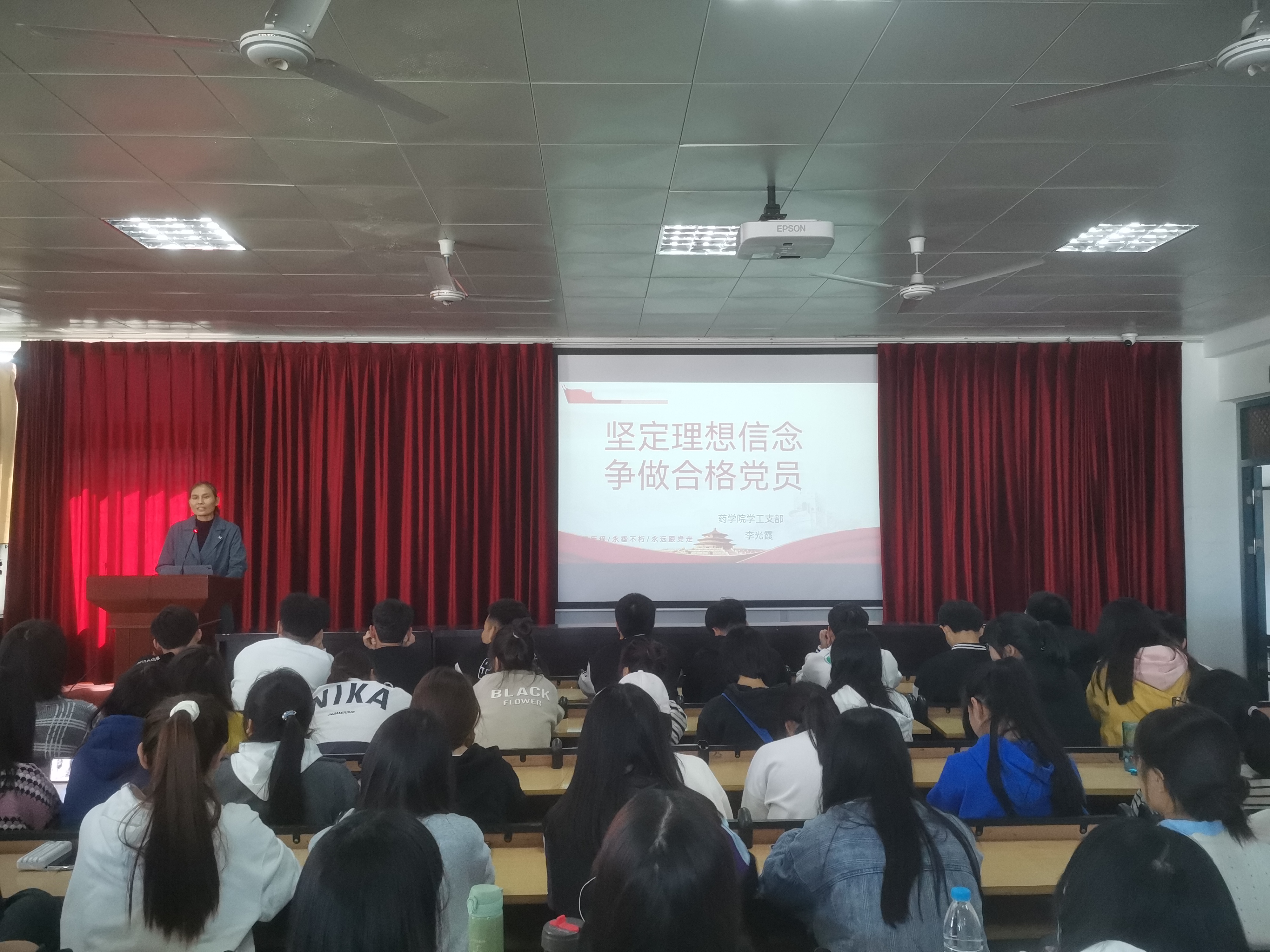 李书记围绕“什么是理想信念,如何坚定理想信念,怎么做合格党员”展开专题党课。她以革命前辈和身边党员的故事讲述了青年要坚定理想信念,增强对马克思主义、共产主义的信仰,增强对中国特色社会主义的信念,增强对实现中华民族伟大复兴的信心,才能成为“心中有党、心中有民、心中有责、心中有戒”的合格党员。