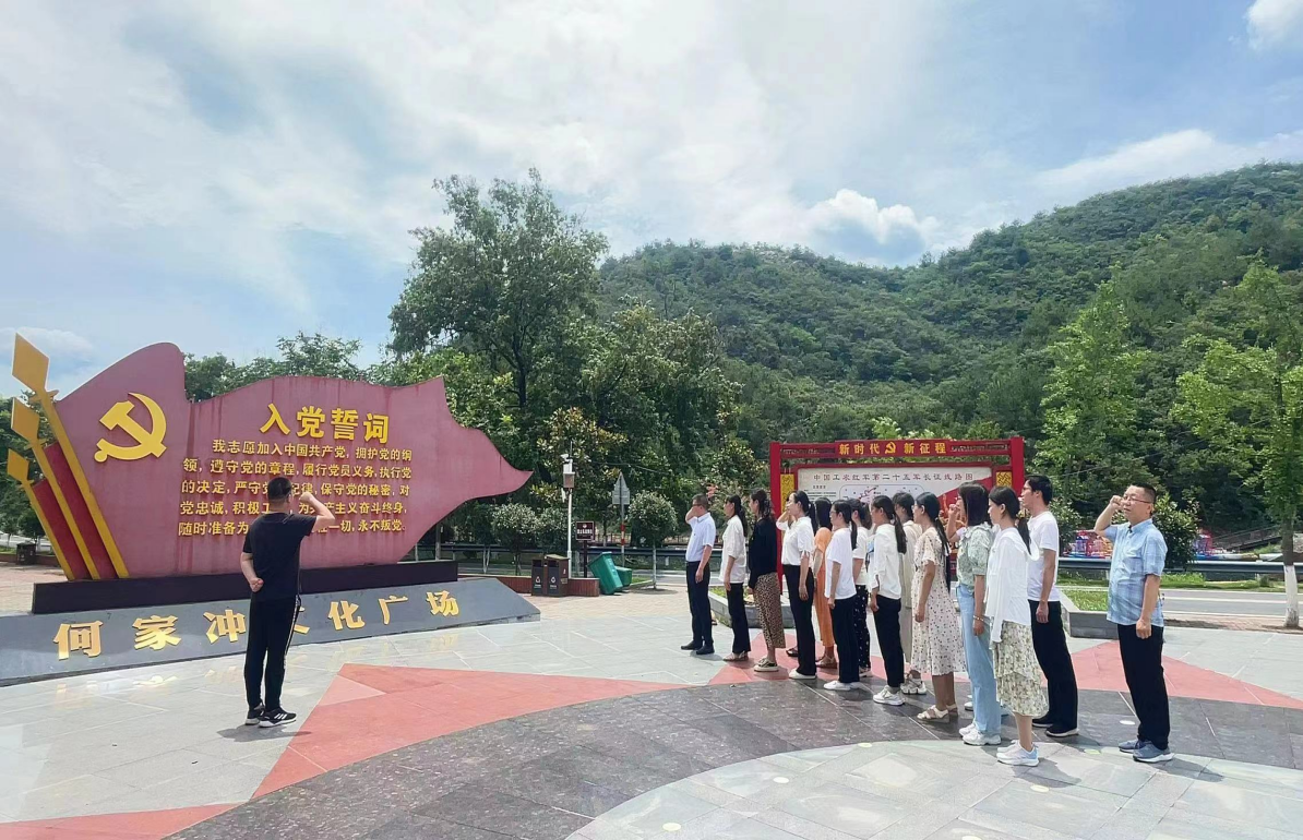 为庆祝中国共产党成立102周年,弘扬革命精神,传承红色基因,接受革命传统教育,6月28日,太阳集团网站8722党总支书记陈超、院长吴长忠带领全体教师党员、入党积极分子和学生代表前往何家冲二十五军长征出发地开展红色教育活动。