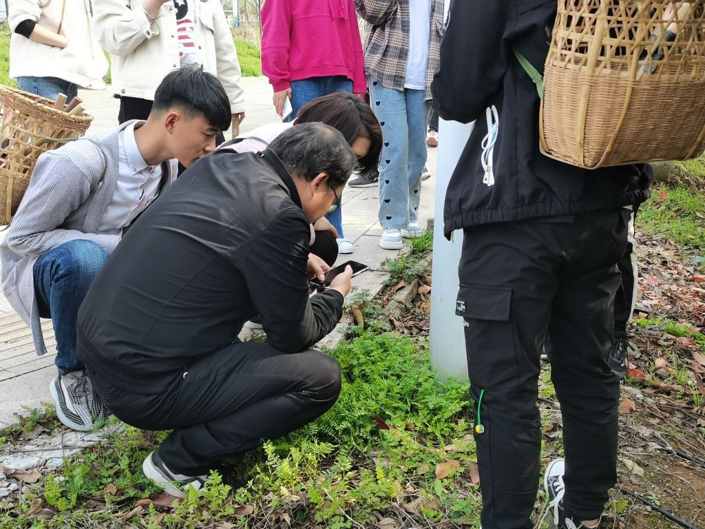 本草社成员沿着校园外围的道路,利用“形色”APP和“花伴侣”等学习软件,识别各种花草种类,并学习植物的药用价值。活动结束时,同学们辨识了茜草、狭叶十大功劳、米口袋、毛茛、野胡萝卜、蛇床、茵陈、罗汉松等几十种植物。在识别植物的同时,学生们也采集一些用于制作标本的植物,采集过程中注意保护其他植物和土壤复原,整个活动激发同学们的极大学习兴趣,实现了理论运用于实践的教学初衷。