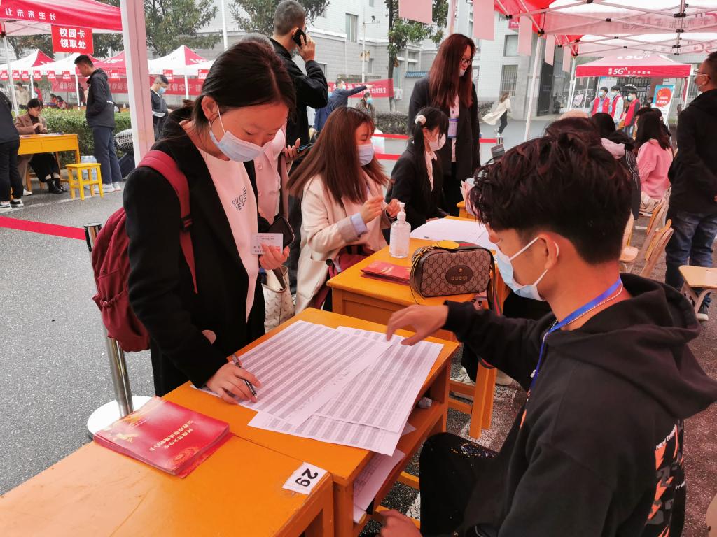 10月9日,在新生报到期间,新生辅导员老师现场对学生入学通知书、学生纸质档案、高考准考证、身份证和考生入场照片,与学生本人进行逐一对照,实行一人一复查,一人审核并现场签字确认。