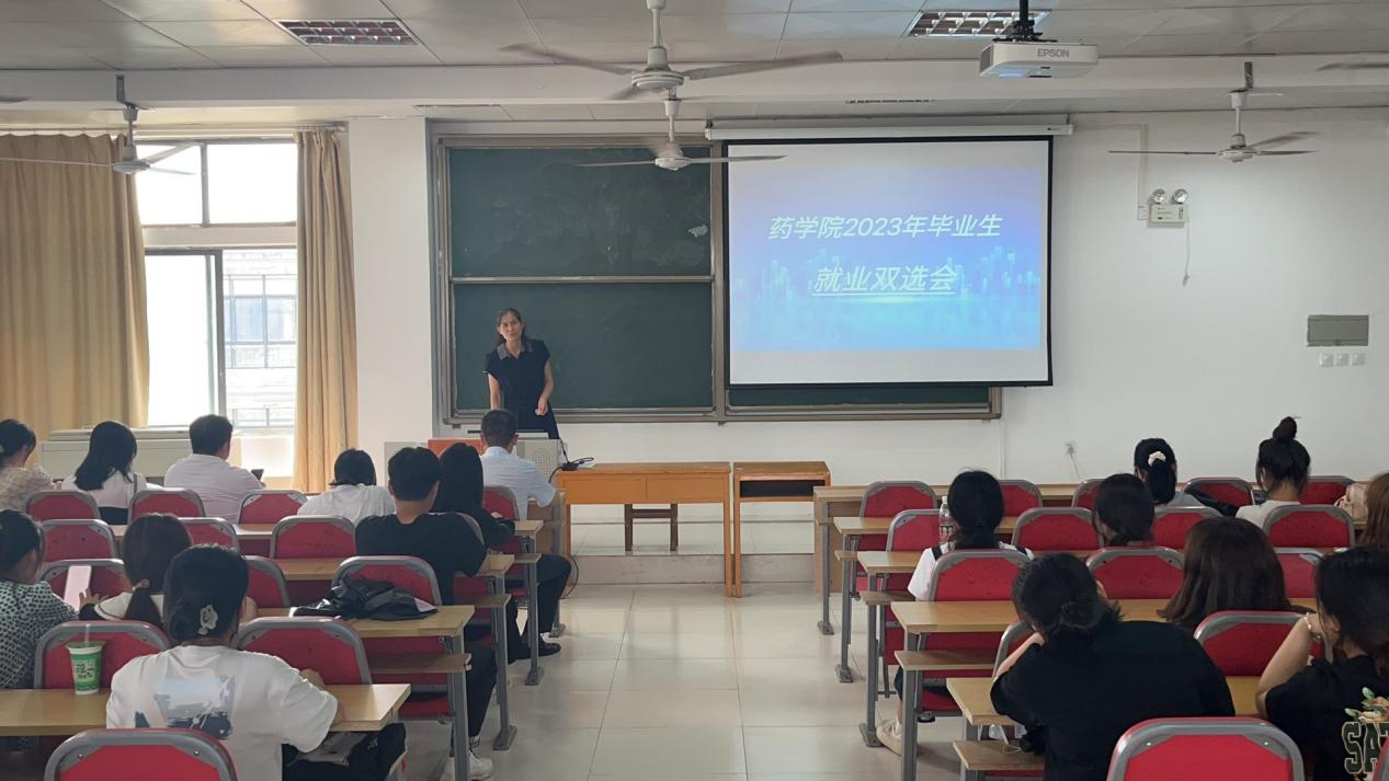 随后,重庆医药集团河南信阳分公司、河南名药师大药房连锁有限公司两家企业人员分别进行招聘宣讲。他们分别围绕公司概况、企业文化、人才需求、人才待遇、员工培养、发展前景等方面展开介绍,并逐一解答现场毕业生提出的问题,提供相应的就业建议。