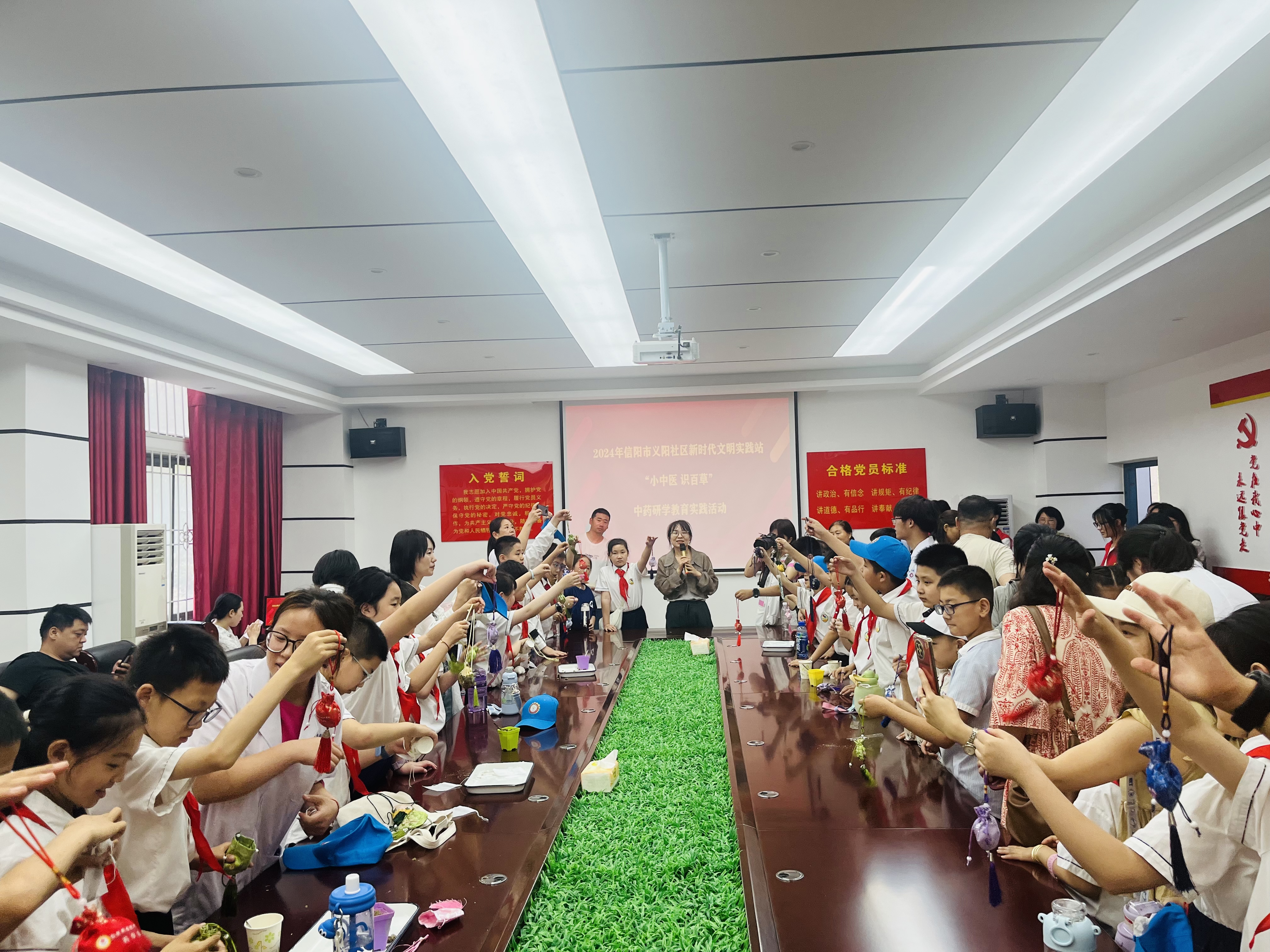 为传承中药文化,感受中药文化魅力,发挥“双带头人”工作室服务地方作用,丰富支部联支部活动形式,6月1日上午,义阳社区党支部组织辖区小学生来到我院开展以“中药研学教育实践”为主题的研学活动,太阳集团网站8722党总支副书记李光霞,教工党支部书记、“双带头人”工作室负责人樊轻亚及全体党员参加。