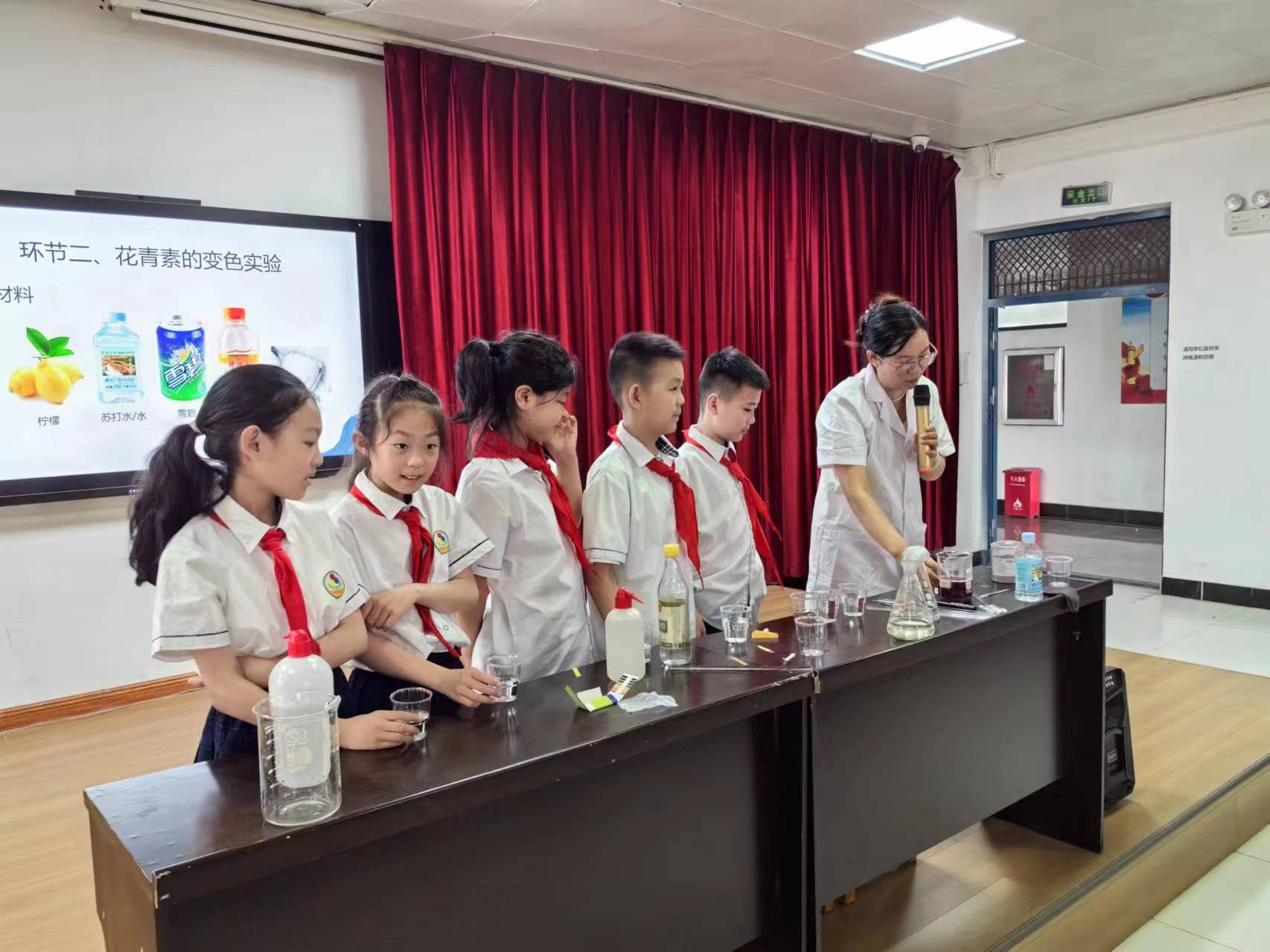 随后,学生们来到8401教室,涂祖月老师以“探秘花青素”为主题开展科普讲堂活动。为了让学生们更直观地了解中药的重要成分之一——花青素,课堂上,学生们通过亲自实验的方式观察花青素在不同环境下的颜色变化,深切感受到了中药的神奇与魅力。科普课堂结束后,太阳集团网站8722社团进行了汉服走秀与中药标本展示,现场气氛热烈,展现了传统文化与中药文化的完美交融,深受现场小学生们的喜爱。